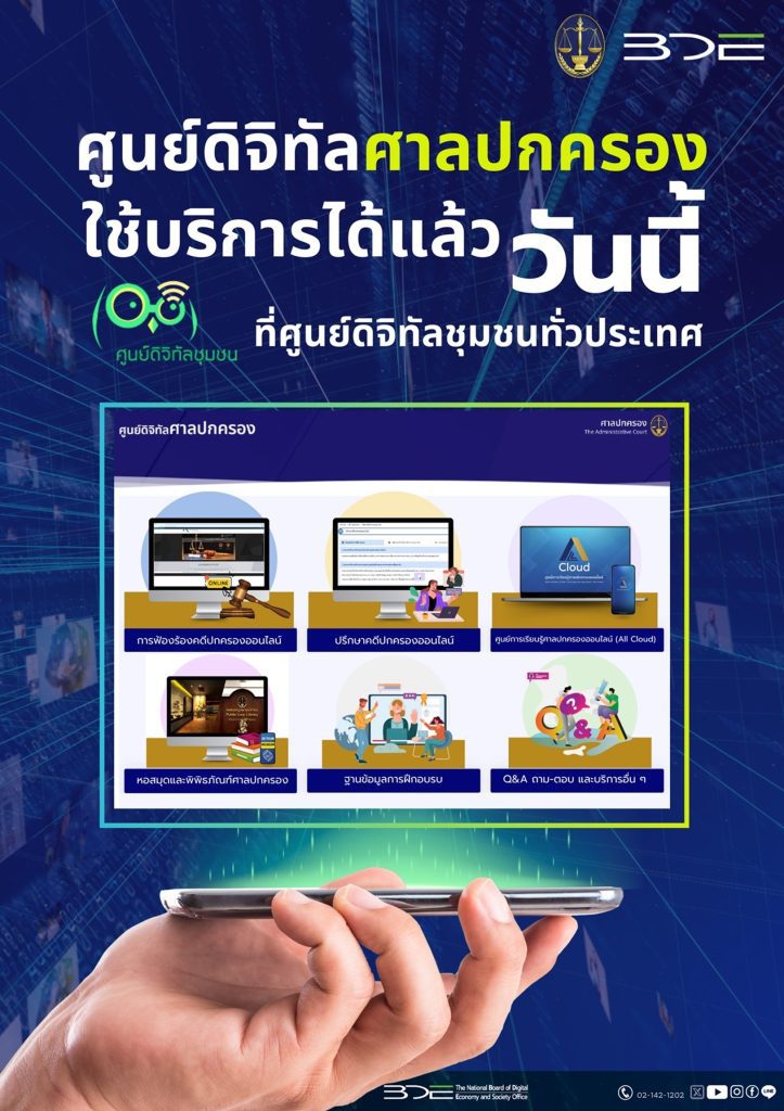 นายเวทางค์ พ่วงทรัพย์ เลขาธิการคณะกรรมการดิจิทัลเพื่อเศรษฐกิจและสังคมแห่งชาติ (BDE) ในฐานะโฆษกกระทรวงดิจิทัลเพื่อเศรษฐกิจและสังคม (ดีอี) กล่าวว่า กระทรวงดิจิทัลเพื่อเศรษฐกิจและสังคม ร่วมกับสำนักงานศาลปกครองได้ดำเนินการภายใต้บันทึกข้อตกลงความร่วมมือ (MOU) ด้านการพัฒนาเทคโนโลยีและนวัตกรรมดิจิทัลเพื่อให้บริการประชาชน โดยได้เปิดให้บริการศูนย์ดิจิทัลศาลปกครองในศูนย์ดิจิทัลชุมชน จำนวน 1,722 แห่งทั่วประเทศ เพื่อให้ประชาชนสามารถเข้าถึงข้อมูลข่าวสารและการอำนวยความยุติธรรมทางปกครองได้โดยง่าย สะดวก รวดเร็ว และทั่วถึง