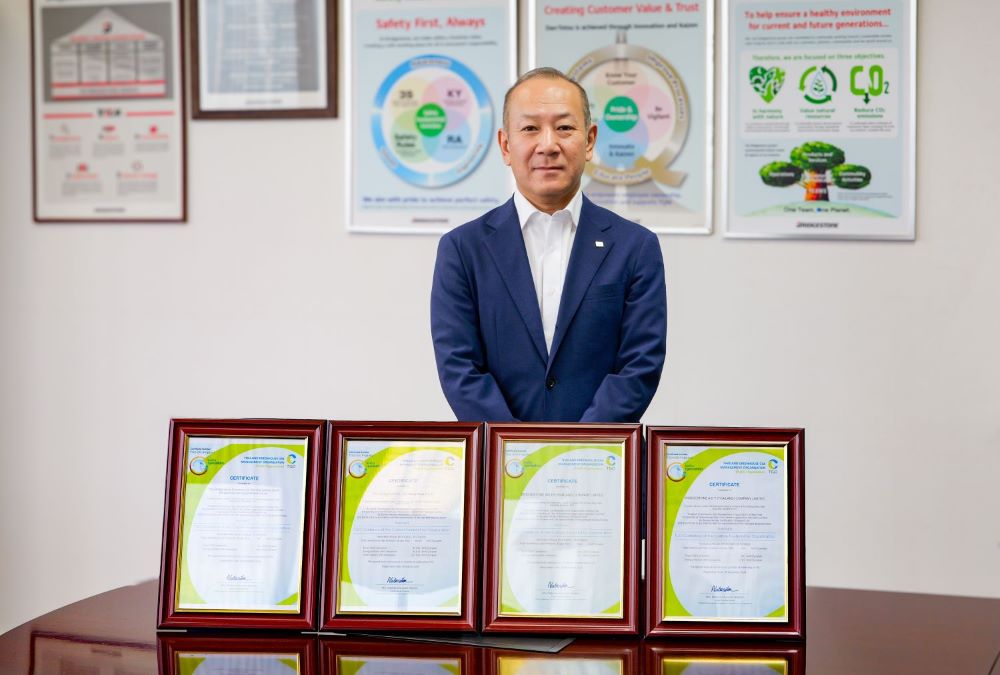 อีกหนึ่งบทพิสูจน์ที่สะท้อนถึงการเป็นองค์กรที่ให้ความสำคัญกับความมุ่งมั่นในการดำเนินงานด้านคาร์บอนฟุตพริ้นท์อย่างต่อเนื่อง รวมถึงการแสดงความรับผิดชอบต่อสังคมและสิ่งแวดล้อมของกลุ่มบริษัทในเครือไทยบริดจสโตน คือการได้รับ ประกาศนียบัตรรับรองด้าน “คาร์บอนฟุตพริ้นท์ขององค์กร” (Carbon Footprint for Organization: CFO) ประจำปี พ.ศ. 2567 จากองค์การบริหารจัดการก๊าซเรือนกระจก (TGO) ซึ่งครอบคลุมการดำเนินงานขององค์กรภายใต้กลุ่มบริษัทในเครือไทยบริดจสโตน และยังครอบคลุมทั้งห่วงโซ่คุณค่าตั้งแต่กระบวนการผลิต การจัดจำหน่าย ศูนย์บริการ ตลอดจนการนำโครงยางเข้าสู่กระบวนการหล่อดอก สะท้อนถึงการตระหนักและใส่ใจในทุกกระบวนการทั้งในส่วนของการใช้เชื้อเพลิง การใช้ไฟฟ้า ไปจนถึงการควบคุมการรั่วไหลของสารที่ส่งผลต่อการปล่อยก๊าซเรือนกระจกที่เกิดขึ้นตลอดการดำเนินธุรกิจในปี พ.ศ. 2566 ตามข้อกำหนดของ TGO ทั้งนี้ กลุ่มบริษัทในเครือไทยบริดจสโตนจะยังคงเดินหน้าดำเนินธุรกิจตามนโยบายสร้างการเติบโตอย่างมั่นคงและยั่งยืน เพื่ออยู่ร่วมกับสังคมการเดินทางของประเทศ พร้อมผลักดันวงการยานยนต์ไทยให้ก้าวไปสู่ความยั่งยืน ด้วยเป้าหมายความเป็นกลางทางคาร์บอนตามที่ได้ตั้งไว้คาร์บอนตามที่ได้ตั้งไว้