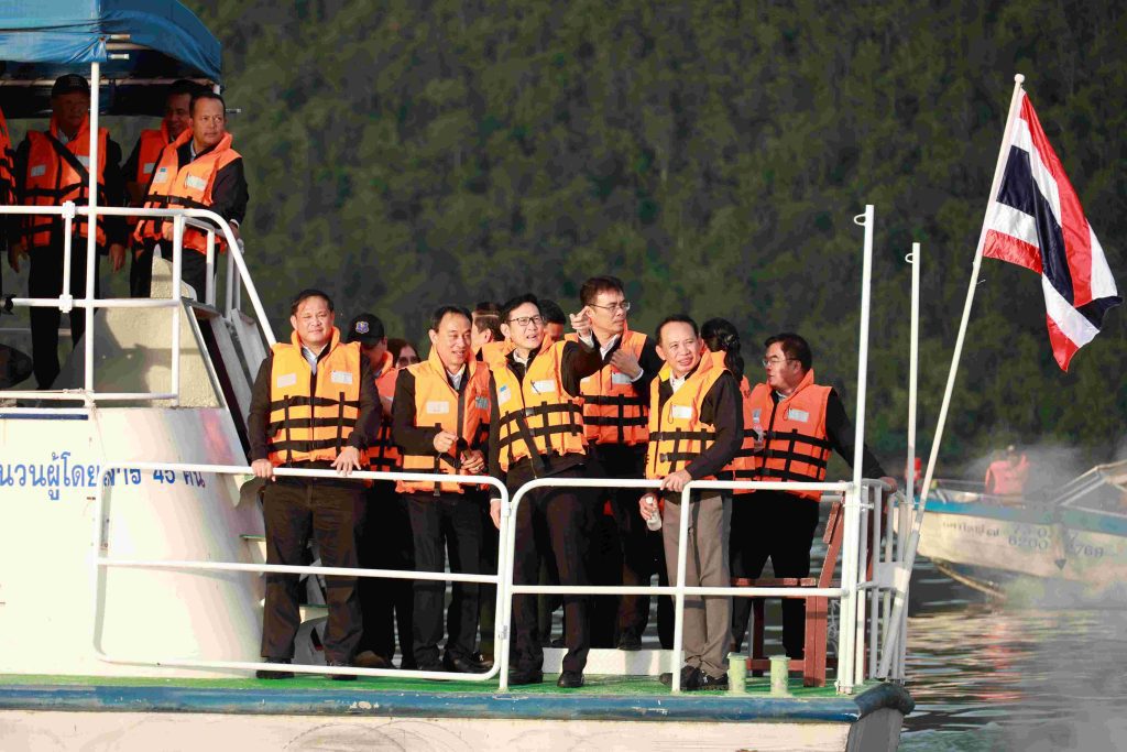 นายอรรถพล ฤกษ์พิบูลย์ รัฐมนตรีว่าการกระทรวงพลังงาน ลงพื้นที่เยี่ยมชมโครงการโรงไฟฟ้าพลังงานแสงอาทิตย์ทุ่นลอยน้ำ (Floating Solar) เขื่อนและโรงไฟฟ้าของการไฟฟ้าฝ่ายผลิตแห่งประเทศไทย (กฟผ.) ณ เขื่อนศรีนครินทร์ จ.กาญจนบุรี โดยมี ดร.ประเสริฐ สินสุขประเสริฐ ปลัดกระทรวงพลังงาน นางพรรณวิภา ปิยัมปุตระ รองผู้ว่าราชการจังหวัดกาญจนบุรี นายนรินทร์ เผ่าวณิช รองผู้ว่าการประจำสำนักผู้ว่าการ รักษาการในตำแหน่งผู้ว่าการ กฟผ. และคณะผู้บริหารให้การต้อนรับ