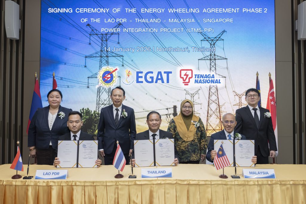 การไฟฟ้าฝ่ายผลิตแห่งประเทศไทย (กฟผ.) รัฐวิสาหกิจไฟฟ้าลาว (Electricité du Laos: EDL) และการไฟฟ้ามาเลเซีย (Tenaga Nasional Berhad: TNB) ร่วมลงนามสัญญา Energy Wheeling Agreement (EWA) ภายใต้โครงการบูรณาการพลังงานไฟฟ้าระหว่าง สปป.ลาว ไทย มาเลเซีย และสิงคโปร์ ระยะที่ 2 (Lao PDR-Thailand-Malaysia-Singapore Power Integration Project Phase 2: LTMS-PIP 2.0) โดยมี ดร.ประเสริฐ สินสุขประเสริฐ ปลัดกระทรวงพลังงาน เป็นประธาน มีนายนรินทร์ เผ่าวณิช ผู้ว่าการ กฟผ. Mr. Souksavart Sosouphanh รองผู้อำนวยการรัฐวิสาหกิจไฟฟ้าลาว (EDL) และ Mr. Hasmarizal Hassan ประธานเจ้าหน้าที่ด้านโครงข่ายไฟฟ้า การไฟฟ้ามาเลเซีย (TNB) ร่วมพิธีลงนาม ณ อาคาร 50 ปี กฟผ. สำนักงานใหญ่ กฟผ. จ.นนทบุรี