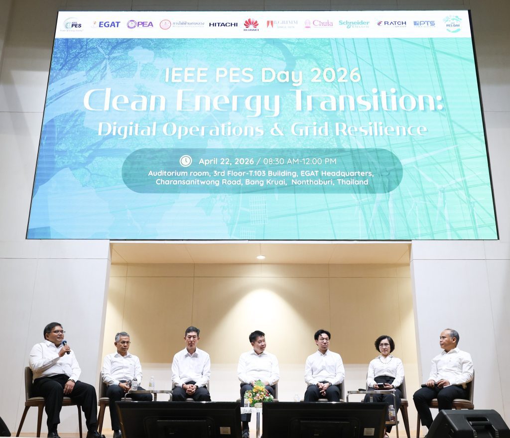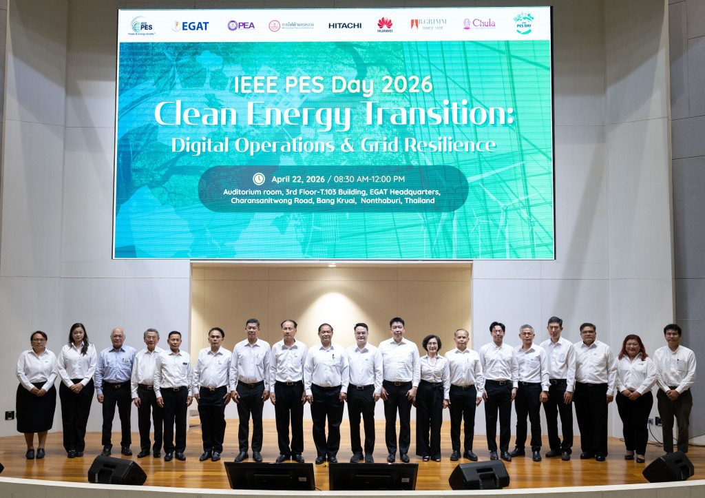 การไฟฟ้าฝ่ายผลิตแห่งประเทศไทย (กฟผ.) ร่วมกับ สมาคมไฟฟ้าและพลังงานไอทริปเปิลอี (ประเทศไทย) จัดงาน “IEEE PES Day 2026” ภายใต้แนวคิด “การเปลี่ยนผ่านพลังงานสะอาด : การดำเนินงานทางด้านดิจิทัลและความยืดหยุ่นของโครงข่ายไฟฟ้า (Clean Energy Transition: Digital Operations & Grid Resilience)” เพื่อแลกเปลี่ยนองค์ความรู้ด้านเทคโนโลยีดิจิทัลในการบริหารจัดการและเสริมเสถียรภาพโครงข่ายไฟฟ้า ผลักดันการใช้พลังงานสะอาดสู่เป้าหมาย Net Zero โดยมี นายนรินทร์ เผ่าวณิช ผู้ว่าการ กฟผ. และนายกสมาคม IEEE PES Thailand เป็นประธานเปิดงาน มีนักวิชาการ องค์กรภาครัฐ ภาคเอกชน นิสิตนักศึกษา ร่วมงานคับคั่ง ณ หอประชุมออดิทอเรียม อาคาร 50 ปี กฟผ. สำนักงานใหญ่ กฟผ. เมื่อวันที่ 22 เมษายน 2569 ที่ผ่านมา